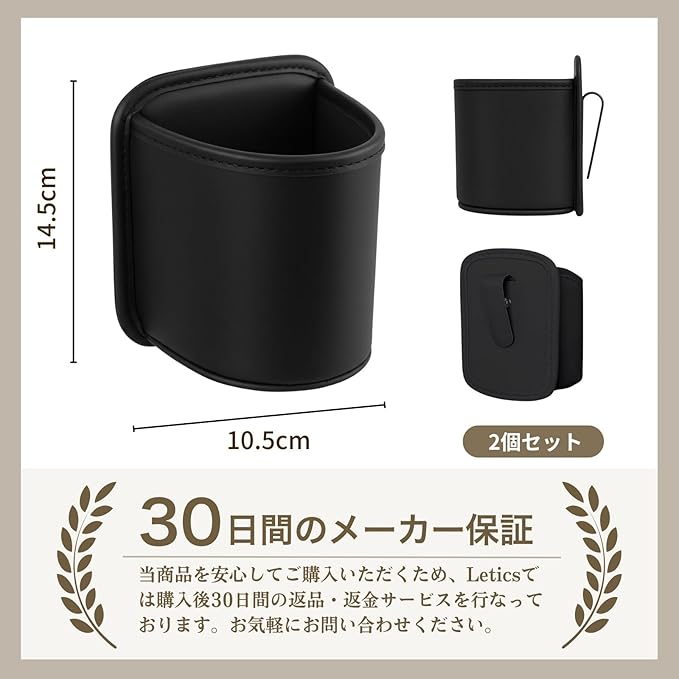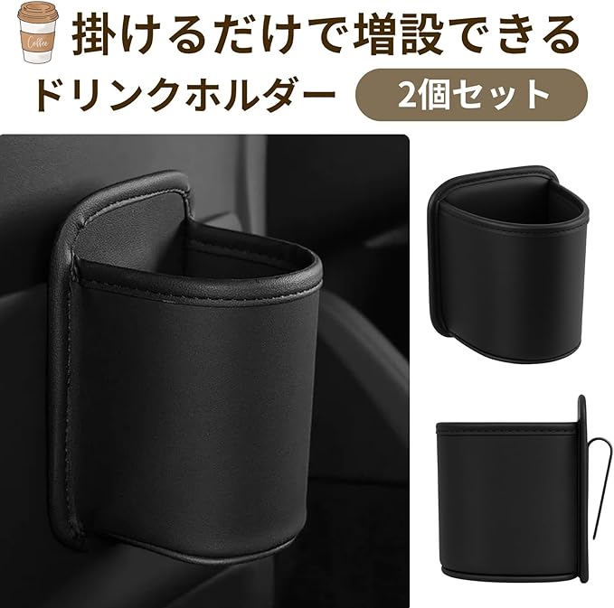 【ドリンクホルダー 2個セット】シンプルで場所を取らないドリンクホルダー2個セットです。引っ掛けて使えるので後部座席など、ドリンクホルダーが無い場所に設置できます。