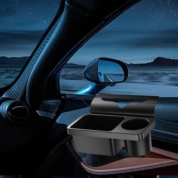 - [便利なカップホルダー機能]: カップホルダーを備えたこの車用収納オーガナイザーは、車の窓の使用を妨げることなく、ウォーターカップを簡単に収納できます。