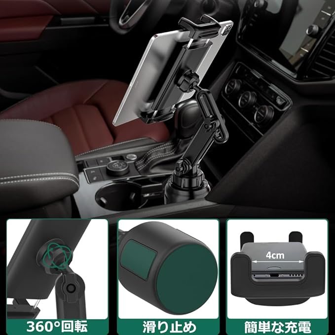 【使い便利】 このiPadカーカップホルダーは工具を必要とせず、カップホルダーに簡単に固定できます。 車の後部座席のカップホルダーにも取り付けることができます。