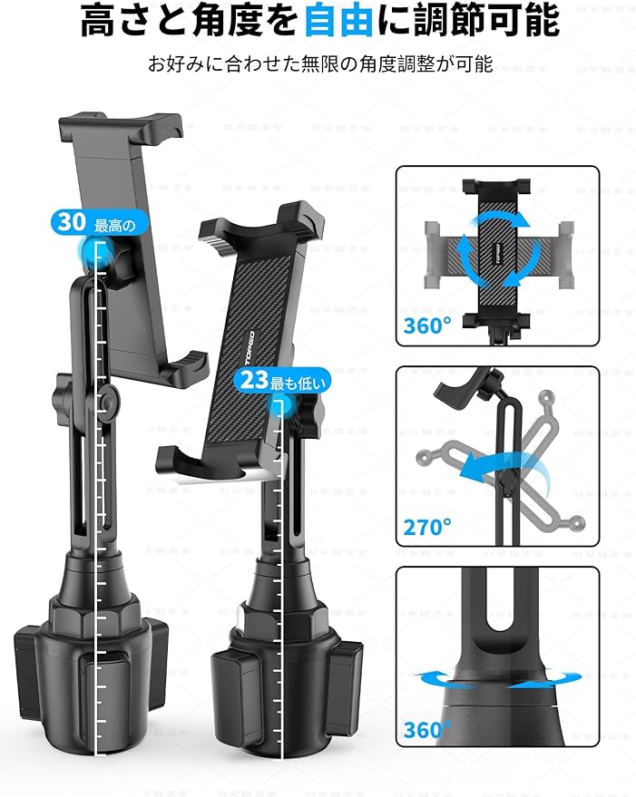 TOPGO 車載タブレットカップホルダー ドリンクホルダー iPad 車載ホルダー スイッチ固定 360 回転 簡単取り付け 安定してぐらつかない 15~29cmのタブレットとスマートフォンに対応 | KAZESHOP