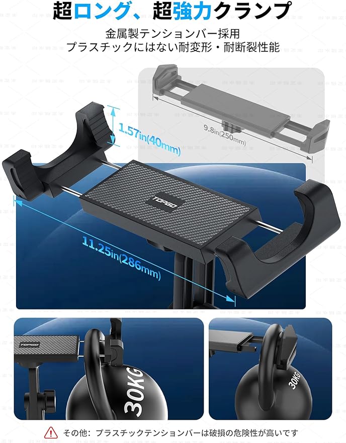 頑丈で耐久性のある構造: TOPGOのタブレットホルダー 車用は、高品質な材料で作られており、長持ちする耐久性を保証します。四隅にソフトシリコンパッドが付いているため、iPad 車載ホルダーとしてタブレットやスマートフォンを完全に保護します。アップグレードされたデュアルアームデザインにより、最も荒れた道路でも卓越した安定性を提供し、車載タブレットホルダーとして最適です。