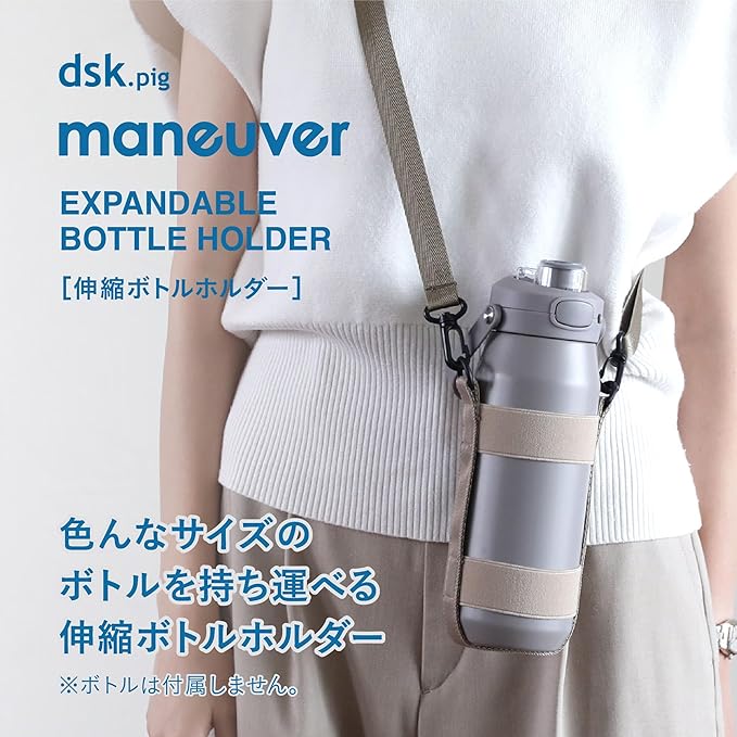 シービージャパン ボトルホルダー 伸縮ゴムベルト サイズ目安[500ml~1.5L] ベージュ ショルダーストラップ 70~130cm 調整可能 肩掛け 斜め掛け 伸縮ボトルホルダー maneuver | KAZESHOP