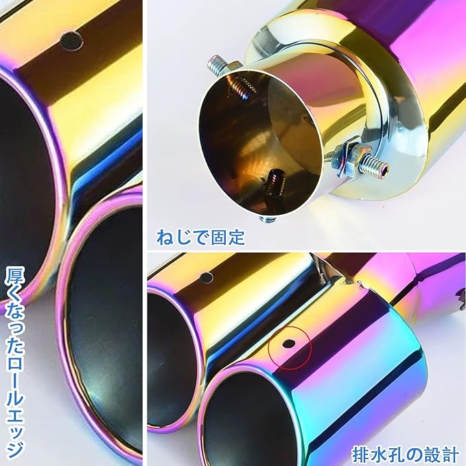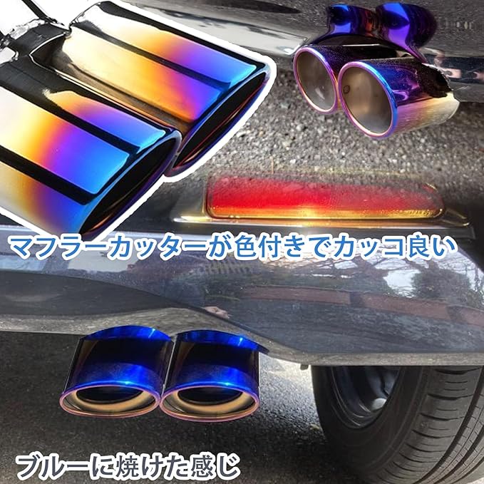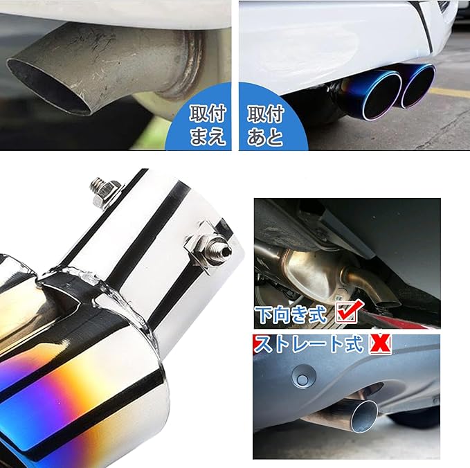 マフラーカッター 2本出し 汎用 マフラー カッター ステンレス 軽自動車 マフラー カッター 取り付け直径55mm以下 マフラーカッター カスタム 下向き 500mm固定ワイヤー付き マフラーカッター チタン焼き 内装パーツ 汎用 | KAZESHOP