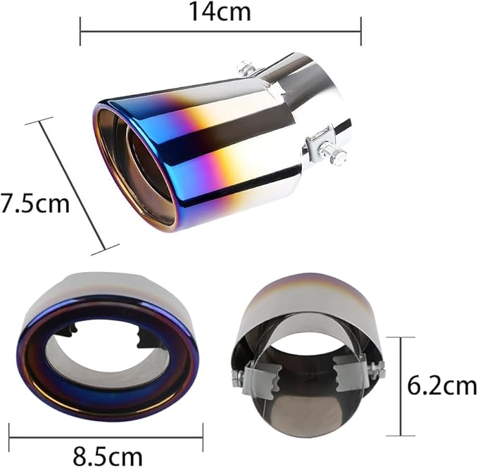 装着サイズ範囲:装着可能マフラーサイズ:38㎜Φ~53mmΦ(大体排気量1.0-2.0Lの乗用車に適応)。汎用タイプなので、取付直径約6.2cm(2.5inch)以下なら、バンパーの干渉などが問題なければ取付可能、ご購入前にお持ちの車両のエキゾーストパイプ外径を必ず計測してください!
