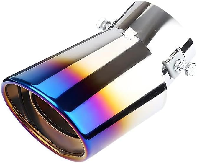 車用 マフラーカッター 下向き式 口径2.5インチ エキゾーストチップ ステンレス製 斜めカット 排気管 マフラー パイプ テールパイプ 外装 パーツ カスタム 大型車 軽自動車 取付直径38-53mmに対応 ブルー | KAZESHOP
