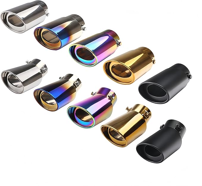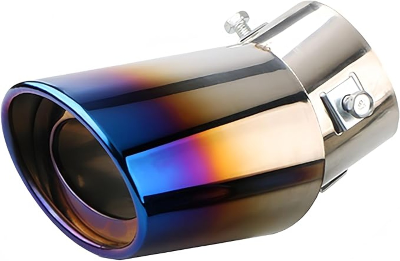 マフラーカッター 汎用 軽自動車 乗用車 車 ドレスアップ カスタムパーツ DIY 車外装パーツ カー用品 ステンレス製 初心者 改造 簡単取り付け シングル 5色選択可 (ブルー&シルバー, カープ(下向きマフラー用)) | KAZESHOP