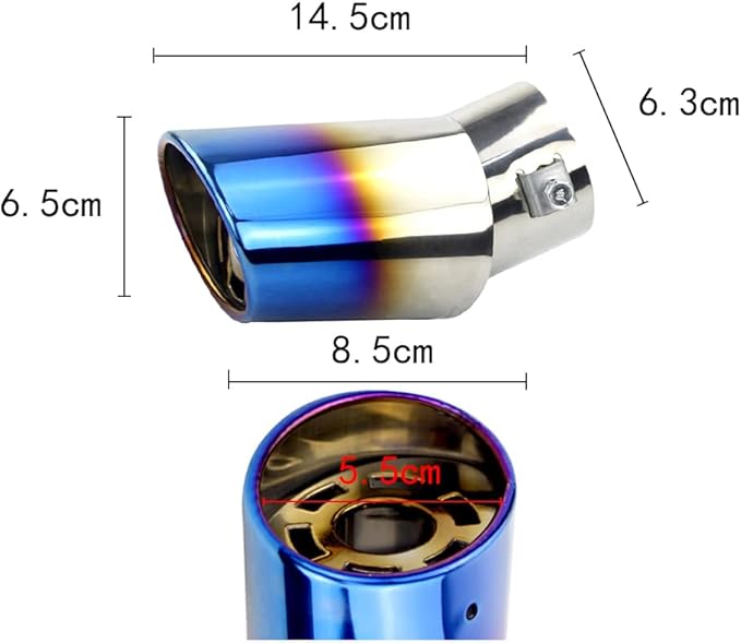 車外用品 下向き式 マフラー カッター 排気管 エキゾーストチップ マフラー パイプ テールパイプ径38-53mm適応 口径2.5インチ 斜めカット 外装 パーツ ドレスアップ カスタム ステンレス製 (ブルー) | KAZESHOP