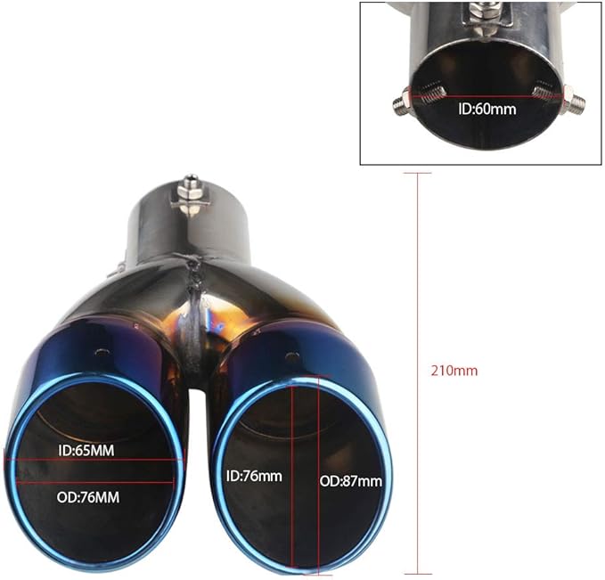 汎用 オーバル型 車用マフラーカッター 2本出し ストレート式 30mm-60mm取付直径 デュアル スラッシュ ポン付け簡単取付 重厚感有り 後付け エアロパーツ 六角レンチ付属 チタン焼き風 | KAZESHOP