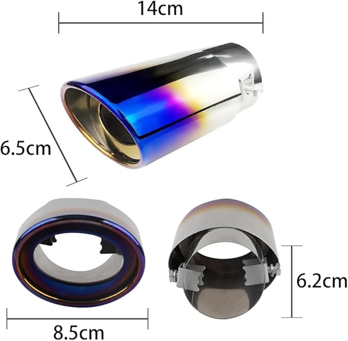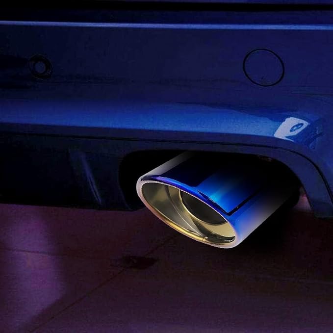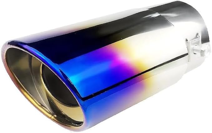 車用 マフラーカッター ストレート式 口径2.5インチ エキゾーストチップ ステンレス製 斜めカット 排気管 マフラー パイプ テールパイプ 外装 パーツ カスタム 大型車 軽自動車 取付直径38-53mmに対応 ブルー | KAZESHOP