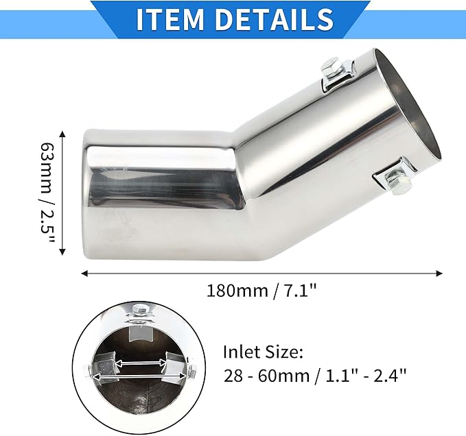 車のテールパイプの外径を測定してください。この排気口は28 - 60mmテールパイプに適しています。