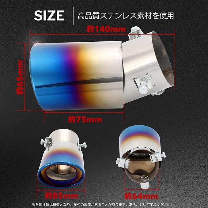 【簡単取り付け】ボルト締め付けタイプで、工具を使わずに簡単に取り付け可能。適用する管外径は38mmから53mmまで対応しています。取り付け前に必ずお車のマフラー形状をご確認ください。