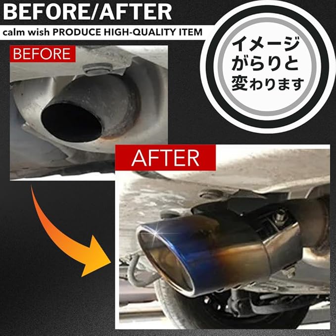 【高級感を演出】calm wisのマフラーカッターは、車のリアビューを一新し、洗練された高級感をプラスします。迫力の1本出しオーバルタイプで、人気でかっこいい存在感を引き立てます。