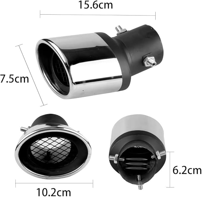 装着サイズ範囲:装着可能マフラーサイズ:38㎜Φ~53mmΦ(大体排気量1.0-2.0Lの乗用車に適応)。汎用タイプなので、取付直径約6.2cm(2.5inch)以下なら、バンパーの干渉などが問題なければ取付可能、ご購入前にお持ちの車両のエキゾーストパイプ外径を必ず計測してください!
