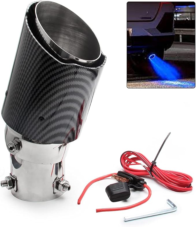 マフラーカッター LED 軽自動車 下向き 向き カーボン調 調整可能 ライト付き 排気 パイプ 発光 光る カーボン テールパイプ径 35~63mmアルミ製 MT AT 汎用 ドレスアップ オーバル型 ストレート式 青 | KAZESHOP
