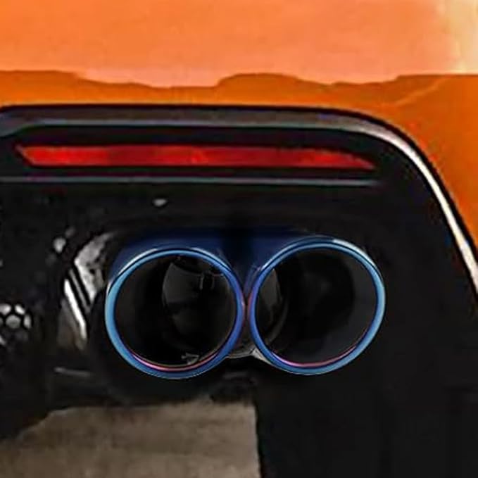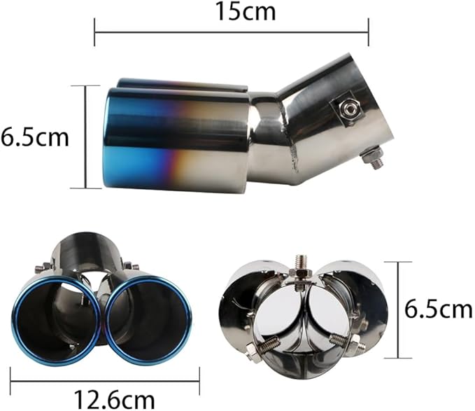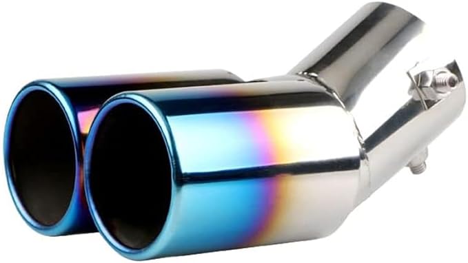 車用 マフラーカッター 下向き式 2本出し 口径2.5インチ エキゾーストチップ ステンレス製 排気管 マフラー パイプ テールパイプ 外装 パーツ カスタム 大型車 軽自動車 取付直径38-53mmに対応 ブルー | KAZESHOP