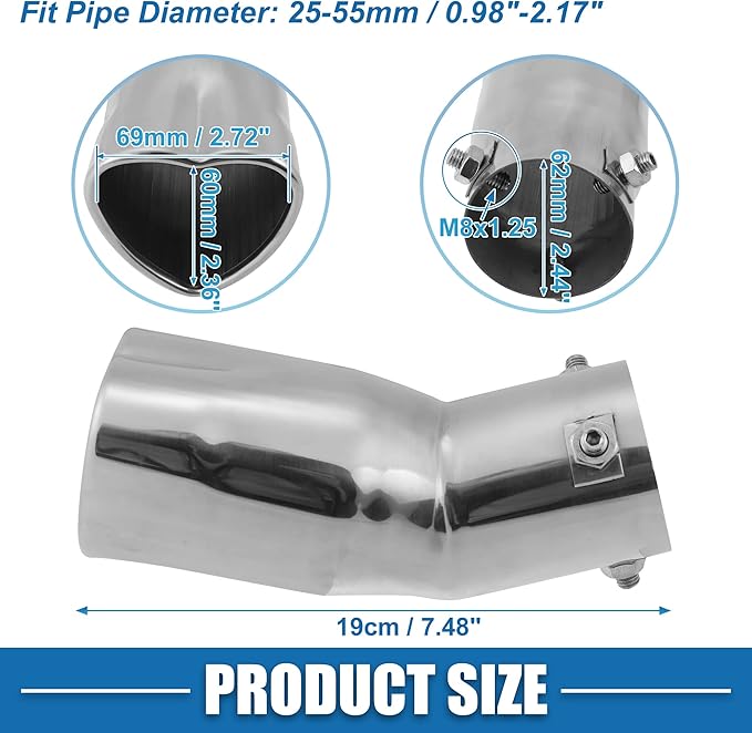 取り付け簡単 - 1. テールパイプの表面をきれいにする; 2. 先端を排気管にスライドさせます; 3. ネジを締めて排気ノズルを固定します。