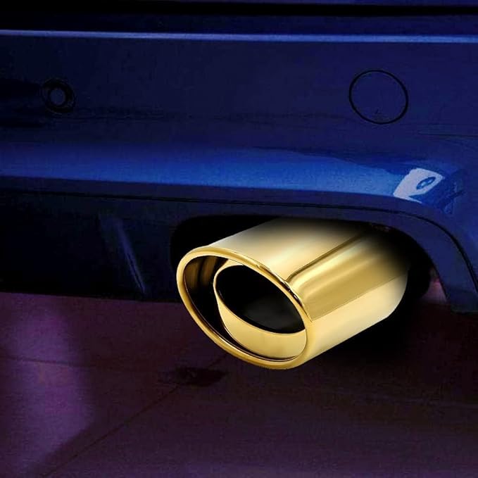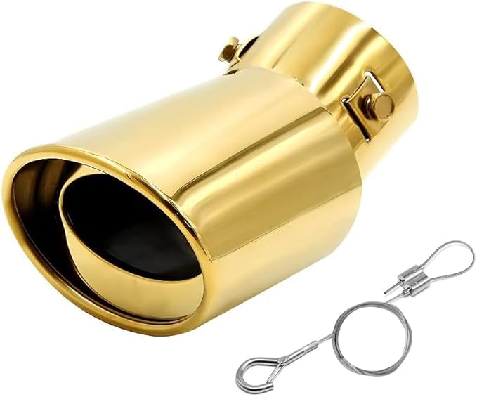 車用 マフラーカッター 下向き式 口径2.5インチ 落下防止ワイヤー付き エキゾーストチップ ステンレス製 斜めカット 排気管 マフラー パイプ テールパイプ 外装 パーツ カスタム 大型車 軽自動車 取付直径38-53mmに対応 金色 | KAZESHOP
