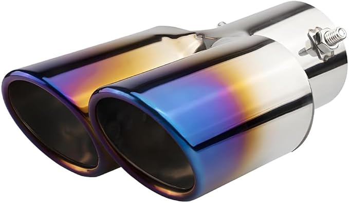 車用 マフラーカッター ストレート式 2本出し 口径2.5インチ エキゾーストチップ ステンレス製 斜めカット 排気管 マフラー パイプ テールパイプ 外装 パーツ カスタム 大型車 軽自動車 取付直径38-53mmに対応 ブルー | KAZESHOP