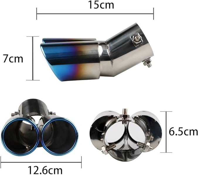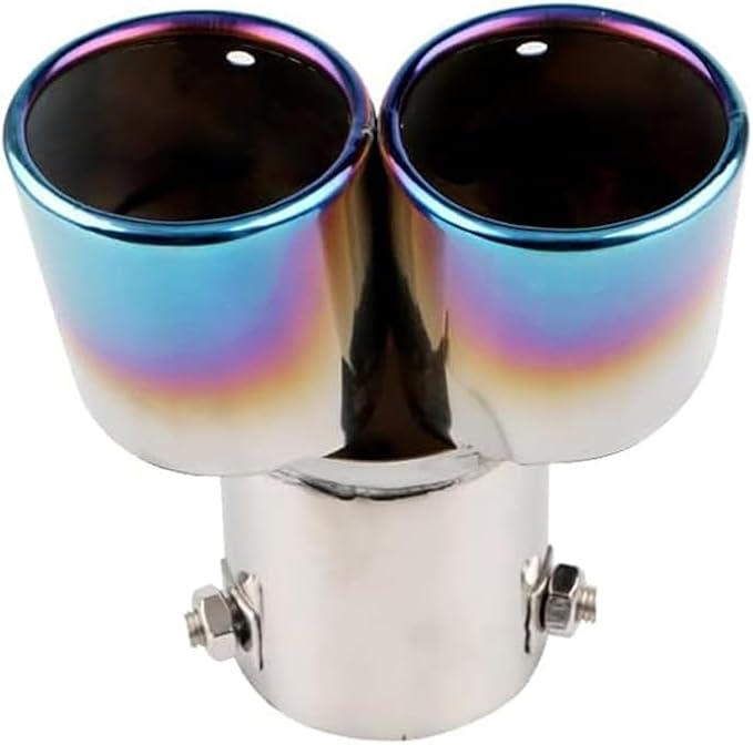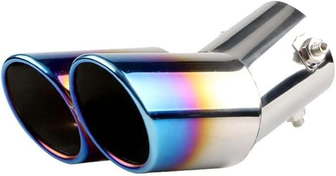 車用 マフラーカッター 下向き式 2本出し 口径2.5インチ エキゾーストチップ ステンレス製 斜めカット 排気管 マフラー パイプ テールパイプ 外装 パーツ カスタム 大型車 軽自動車 取付直径38-53mmに対応 ブルー | KAZESHOP