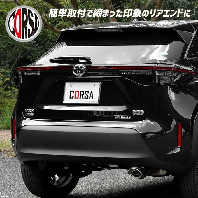 【専用設計で美しいフィット感】 ヤリスクロス専用に設計されたマフラーカッター。 違和感のない一体感で、純正のような仕上がりを実現。リアビューを上質に演出します。
