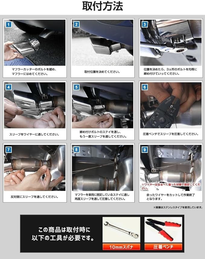 【工具があれば簡単取り付け】 10mmスパナと圧着ペンチがあれば、ボルト2本で簡単に装着可能。 DIY初心者でも安心して取り付けでき、特別な加工や専門知識は不要です。