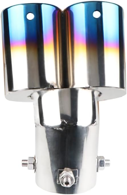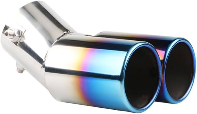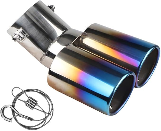 車外用品 下向き式 マフラーカッター 2本出し 排気管 エキゾーストチップ マフラー パイプ テールパイプ径38-53mm適応 口径2.5インチ 外装 パーツ ドレスアップ カスタム ステンレス製 脱落防止ワイヤー付き (ブルー) | KAZESHOP
