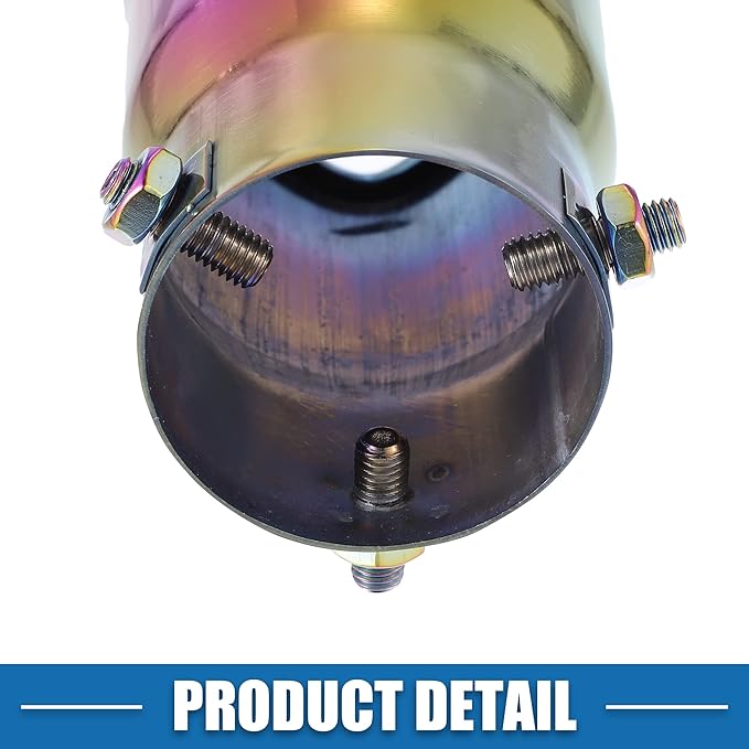 簡単取付 - 1. テールパイプの表面をきれいにする; 2. 先端を排気管にスライドさせます; 3. ネジを締めて排気ノズルを固定します。