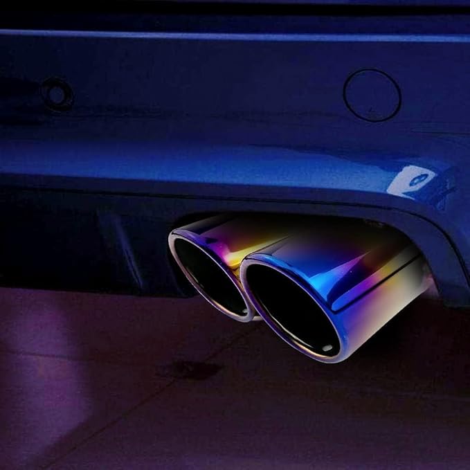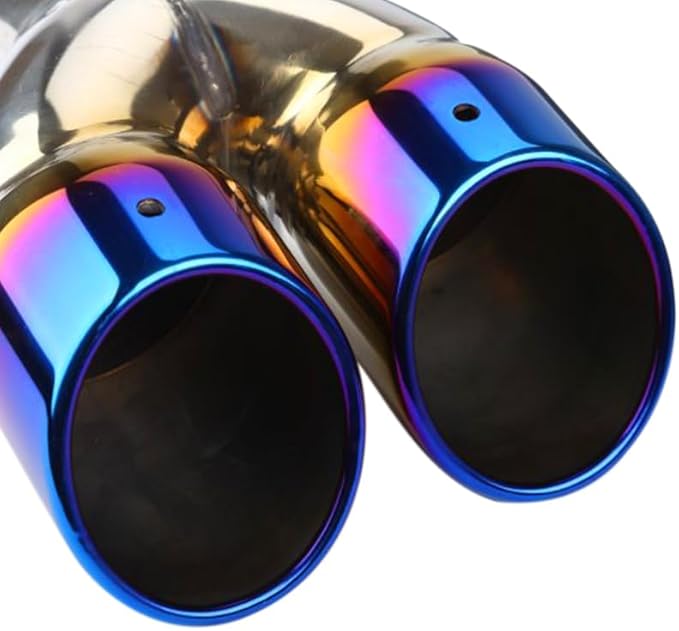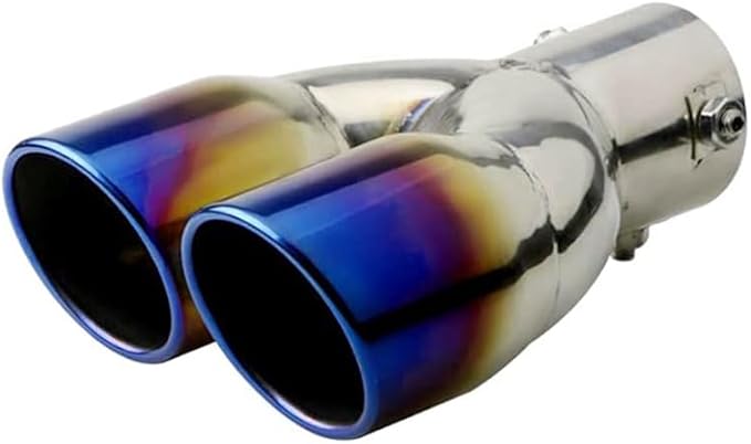 車用 マフラーカッター ストレート式 2本出し 口径2.5インチ エキゾーストチップ 斜めカット ステンレス製 排気管 マフラー パイプ テールパイプ 外装 パーツ カスタム 大型車 軽自動車 取付直径38-53mmに対応 ブルー | KAZESHOP