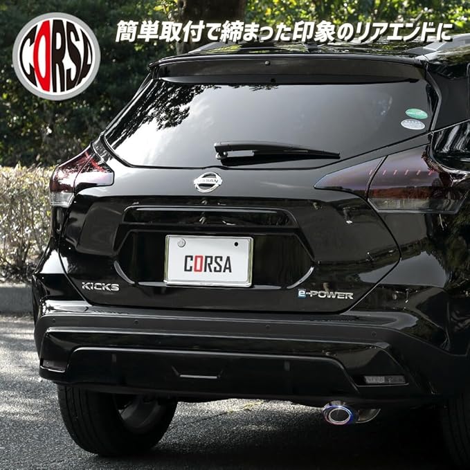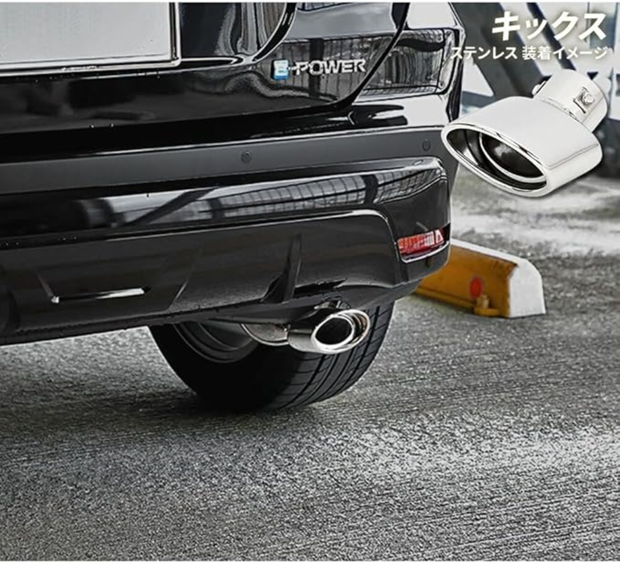 【専用設計で美しいフィット感】 キックス専用に設計されたマフラーカッター。 違和感のない一体感で、純正のような仕上がりを実現。リアビューを上質に演出します。