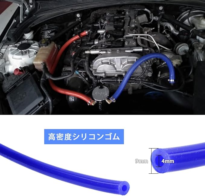 【アプリケーション】気密性と金属部品への密着性に優れ、真空ホース(各種メーター、EVC、VVC)や水ホース(ラジエーターリターンホース、ガスケット)の配管に使用できます。