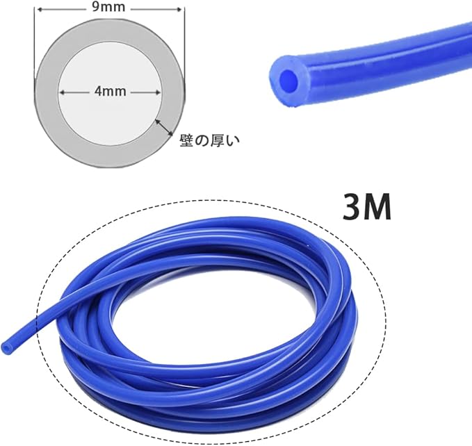 【サイズ】シリコンホースX 1 (3m 青) 内径:4mm 外径:9mm