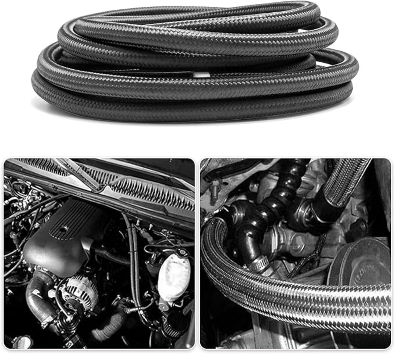 【使用範囲】:メッシュホースは、さまざまなブランドのさまざまな車に適合します。自動車や船舶用エンジンなど、レーシングカーやモーターレーシングバイクに最適です。