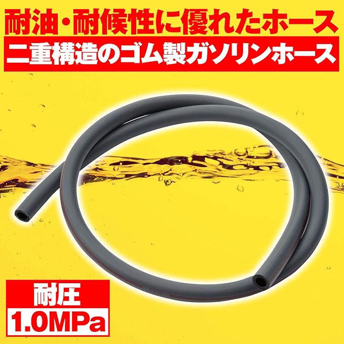 耐油性、耐候性に優れた二重構造のバイク用ガソリンホース。