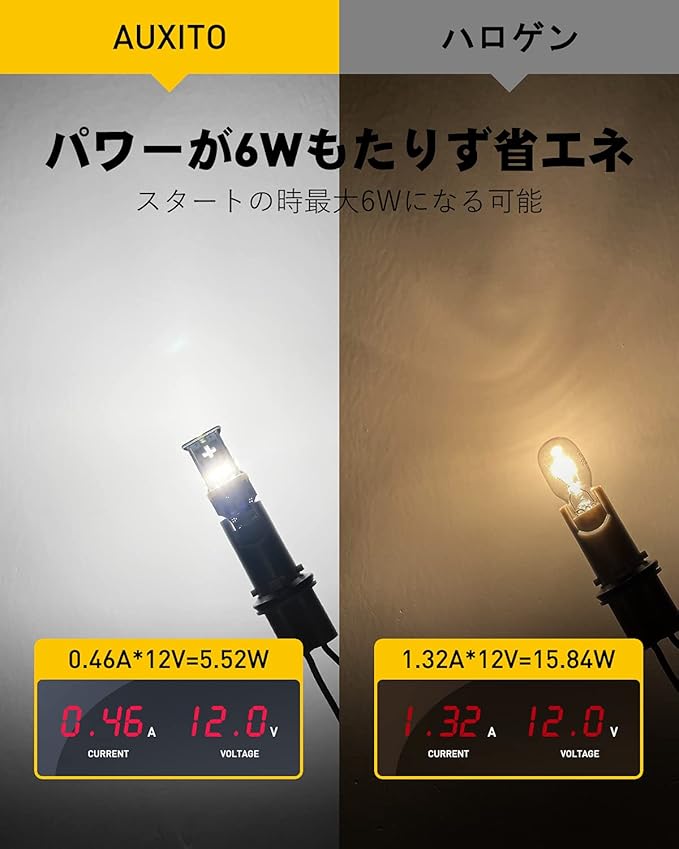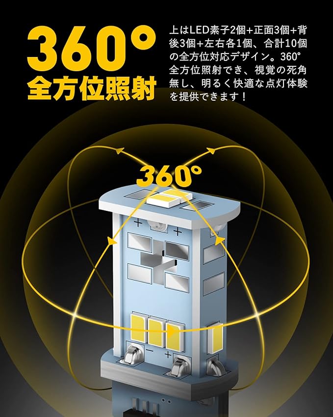 【超高輝度&省エネルギー】1300LMの明るさ、超高輝度な6000Kホワイト光、6Wの消費電力だけ、市販のハロゲン(パワー:18W)より省エネルギーの上で、明るさは大幅にアップ!視認性を重視され、後方照射用の光を足しています。暗い場所でバックカメラから後方をはっきり見て、後部の不慮の事故などを防ぎます。