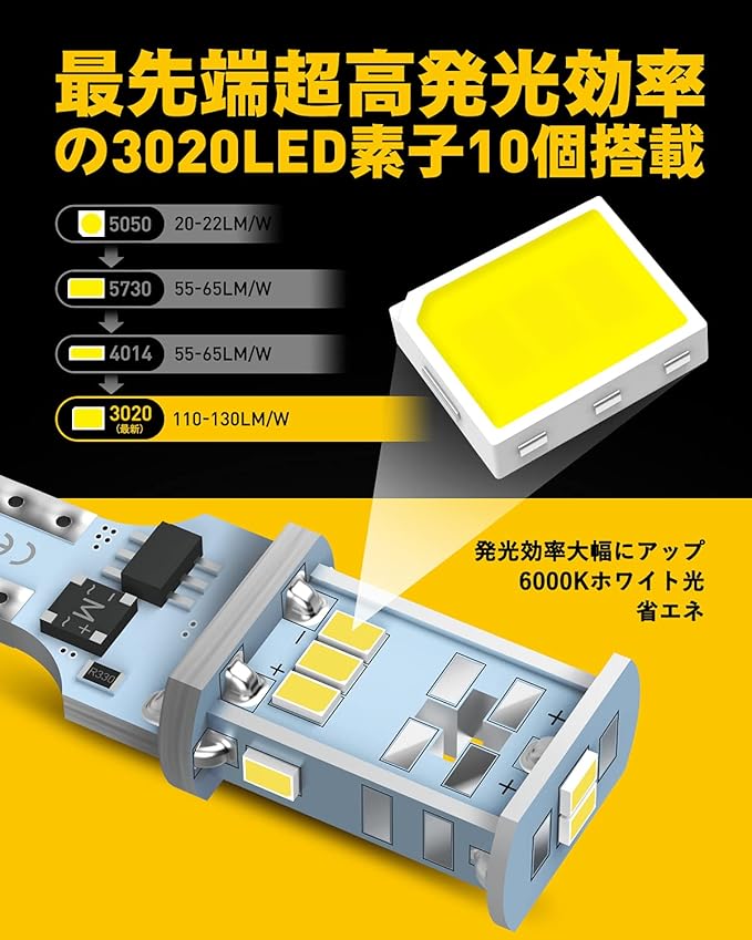 【 T16 LED ホワイト 2個】バックランプとしか使われません。最先端超高発光効率の3020LED素子10個搭載、360 全方位照射でき、CANBUSキャンセラー内蔵で大部分車種はエラーフリー、12V車用T16バルブ2個セット。