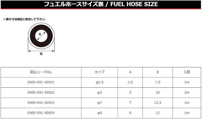 このキタコ(KITACO) フューエルホースは、内部にNBR(ニトリルゴム)を採用した二層構造で、耐圧0.7Mpa、耐熱・耐寒・耐油・耐ガソリンに優れた汎用ホースです。内径7センチメートル、外径7ミリメートル、全長1メートルのこのホースは、ブラックで、FI車やブレーキフルードには使用できません。単品で販売されています。