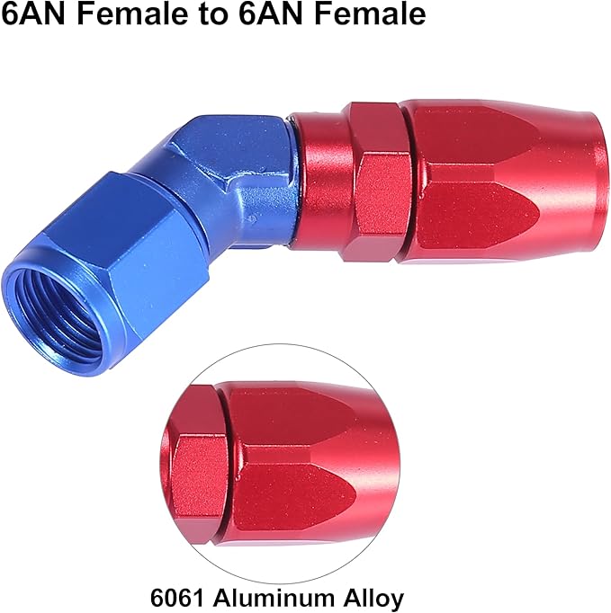 AN6 45度スイベルホースエンドフィッティングは、長い耐用年数のために6061アルミニウム合金材料で作られています。