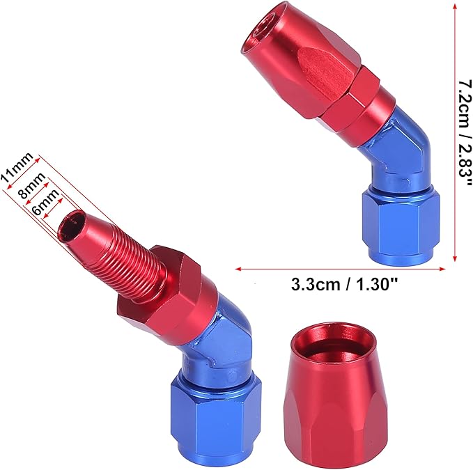 X AUTOHAUX フィッティング 燃料油ホース ホースエンド AN6 ANタイプ ホースコネクタ ガソリンホースコネクタ 燃料ホースコネクタ 45度ホースユニオン 45度メススイベルカプラー 車の燃料ラインオイル 車用 自動車用 レッド ブルー 1個入り | KAZESHOP