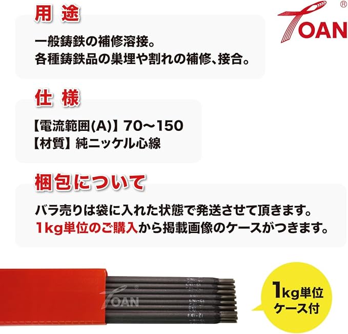 ■用途:一般鋳鉄の補修溶接。各種鋳鉄品の巣埋や割れの補修、接合