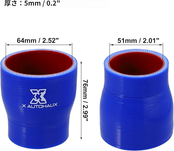 X AUTOHAUX シリコンホース ストレート シリコンパイプ ラジエーターホース 内径51-64mm 長さ76mm ホースバンド付き 耐熱 耐寒 耐久 接続ホース エアクリーナー 接続 ストレート インタークーラーチューブ 車用 ブルー レッド 1個 | KAZESHOP