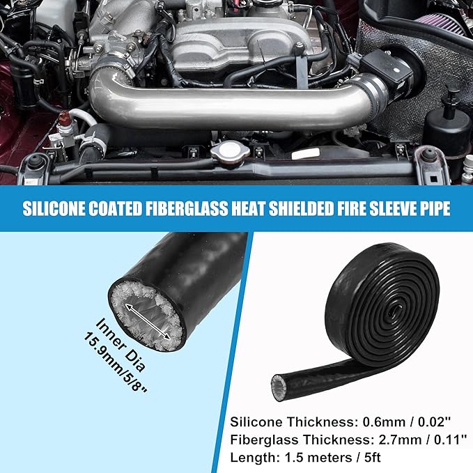X AUTOHAUX 燃料ホース 保護カバー 車用 断熱パイプ 保護カバー ヒートシールド防火スリーブパイプ シリコーン被覆 熱 遮断 ガラス繊維テープ 電気配線用 黒 内径15.5mm 長さ150cm | KAZESHOP