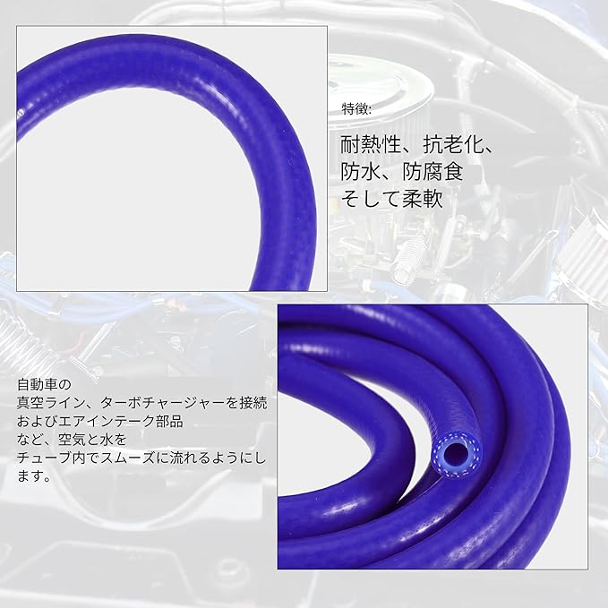 X AUTOHAUX シリコンホース シリコンチューブ 耐熱ホース バキュームホース シリコン真空ホース 燃料ホース自動車用 耐熱ホース バキュームホース シリコン真空ホース 燃料ホース エンジンエアインテークバキュームホース パイプ ブルー 内径8mm 長さ3 m クーラント インタークーラーパイプ エンジン | KAZESHOP