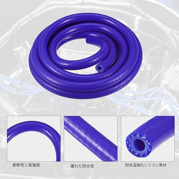 取り付けが簡単で、エンジンや真空チューブを必要とするものの交換用ホースとして使用するのに適しています。ご注意ください:シリコンヒーターチューブは燃料やオイルに対して耐性がありません。