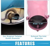交換用 - 排 気チップパイプの外径は63 mm / 2.48インチ(D)であり、排 気チップパイプの出口サイズは67x60mm / 2.64インチx2.36インチ(L*W)です。