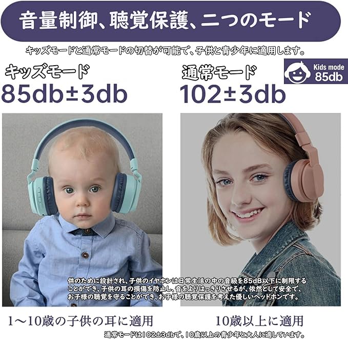 【音量制御、聴覚保護】キッズモードと通常モードの切替が可能で、子供と青少年に適用します。子供のために設計され、子供のイヤホンは日常生活の中の音級を85dB以下に制限することができ、子供の耳の損傷を防止し、音をよりはっきりさせるが、依然として安全で、お子様の聴覚を守ることができ、お子様の聴覚保護を考えた優しいヘッドホンです。通常モードは102 3 dbで、10歳以上の青少年と大人に適しています。さまざまな環境に対応できる安全な音量で、お子様が聴くものを好きになるようサポートします。
