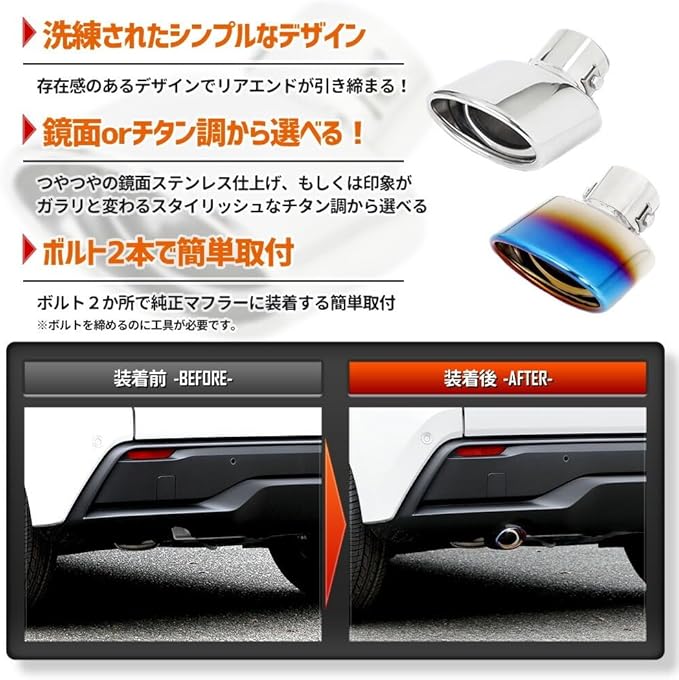 CORSA E13 ノート NOTE 適合 マフラーカッター 1本出し シルバー 鏡面 円形 丸型 落下防止 メッキ カスタム 外装 パーツ アクセサリー ドレスアップ ステンレス チタン (チタン調) | KAZESHOP