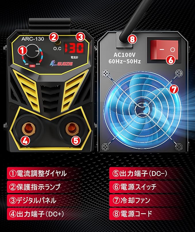 GZ GUOZHI 溶接機 100v アーク溶接 130A インバーター直流半自動 ミニポータブル溶接機 ホットスタート 初心者向け 小型 軽量 家庭用 日本語取扱説明書付き MINI ARC-130 | KAZESHOP