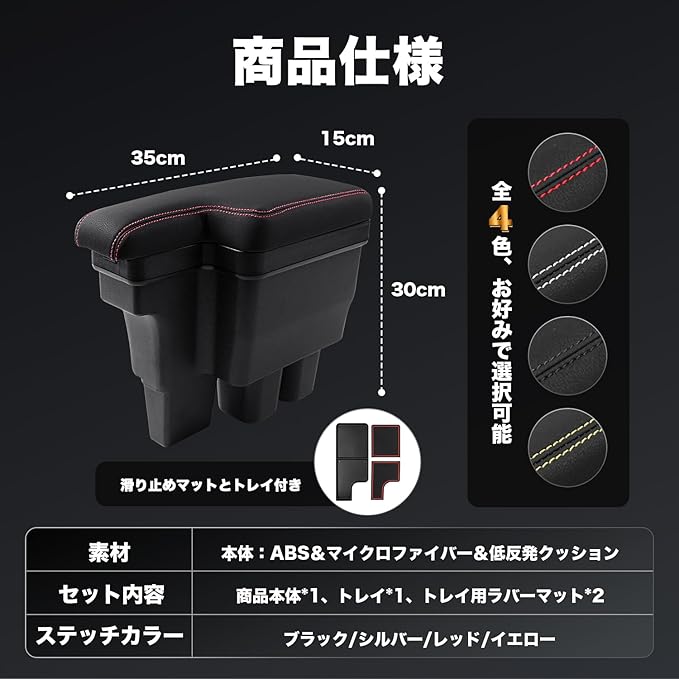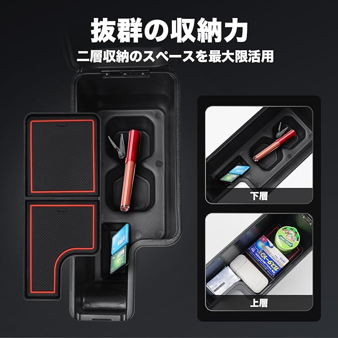 3.【商品内容】:アームレストコンソール本体*1、滑り止めマット*2。運転席周りのスペースにきれいになります、車のキー、スマホ、タバコ、財布、手帳、カード、チケットなど 様々な小物を収納できます、 気分良くドライブを楽しめます。