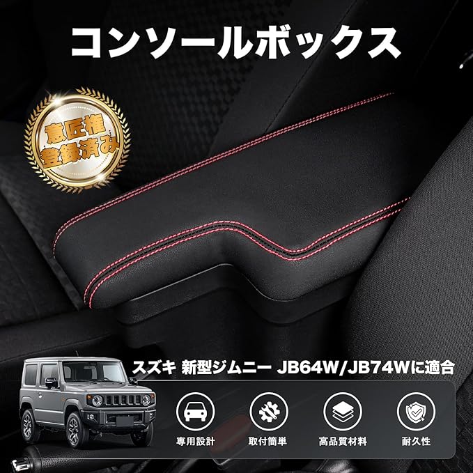 1.【適合車種】:スズキ ジムニー JB64/JB74に適合。(H30.7-現行)※シートカバーを追加装備したお客様にご注意!シートカバーを追加装着すると、運転席と助手席の間のスペースが狭くなり、アームレストボックスの開閉しにくい場合があります。予めご了承くだいさい。