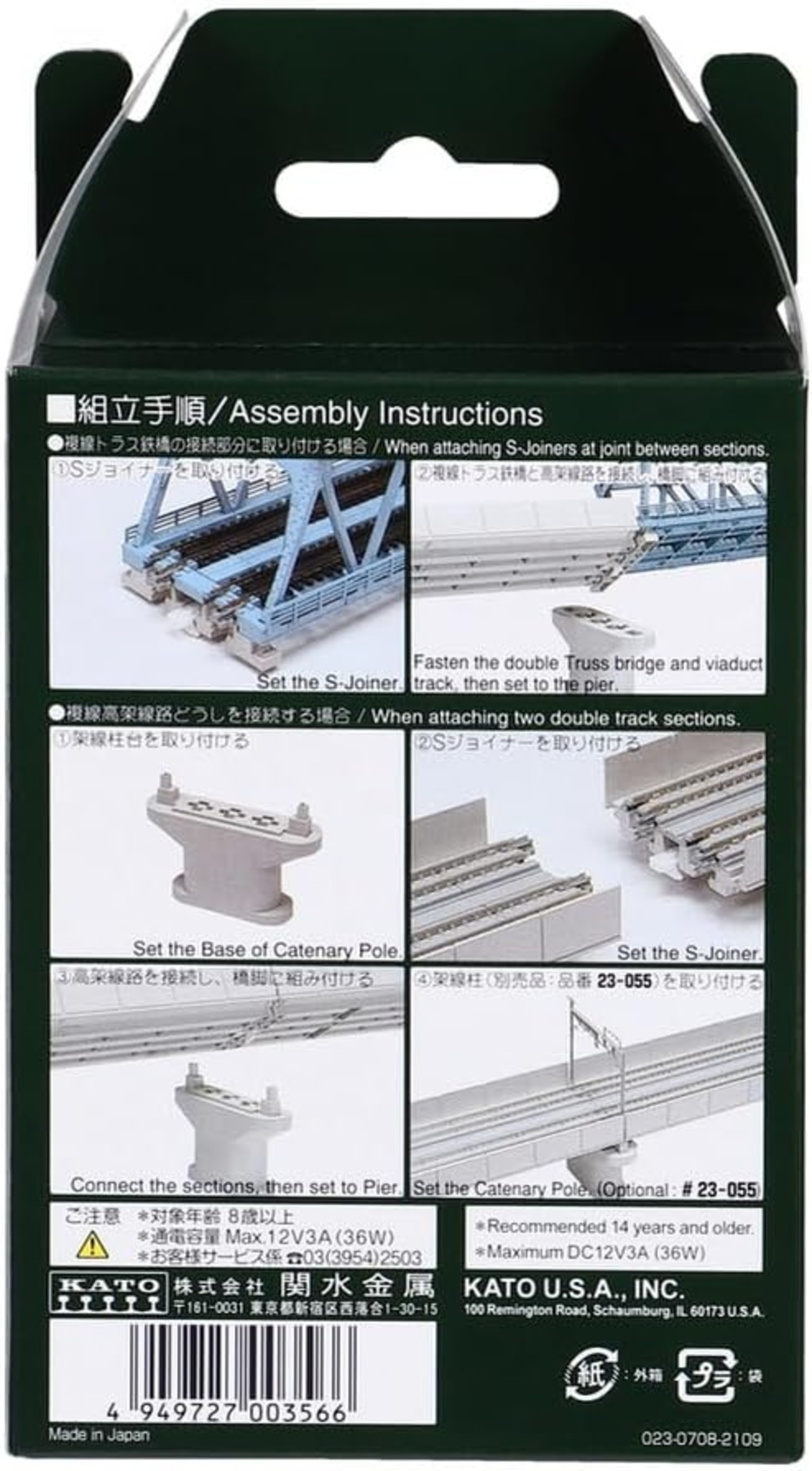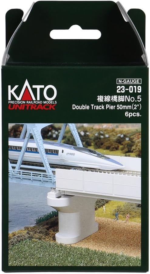 複線トラス鉄橋用の橋脚。複線高架線路などにも使用できる。複線架線台、Sジョイナーがそれぞれ6個付属している。ユニトラック路線規格に対応しているので、確実にフロアレイアウトを組むことができる。